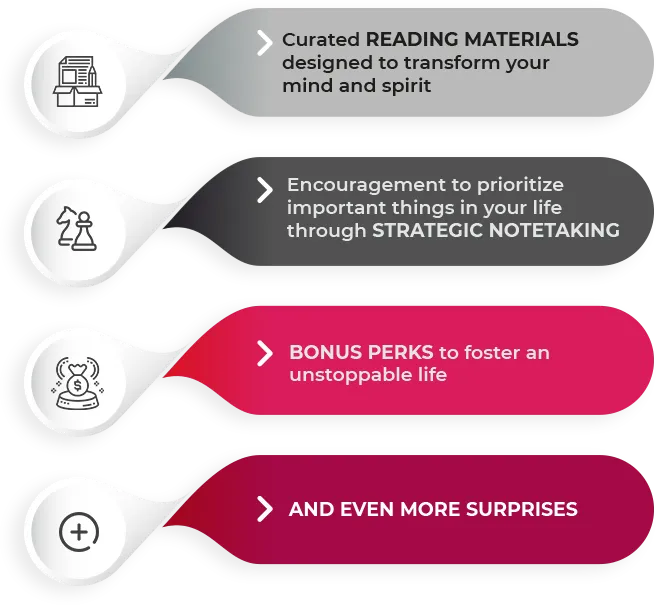 Our desire is that you use this reminder to become unstoppable in everything you do - in yourbusiness, in your relationships, in your aspirations, and in achieving wealth in your life.